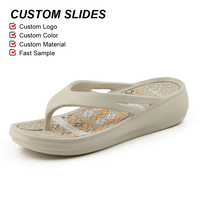 Olicom Logotipo Personalizado Alta Crescente Cunha Flip-flop Chinelos Mulheres Tanga Sandálias Arch Suporte Não-slip Flip Flops Indoor Outdoor